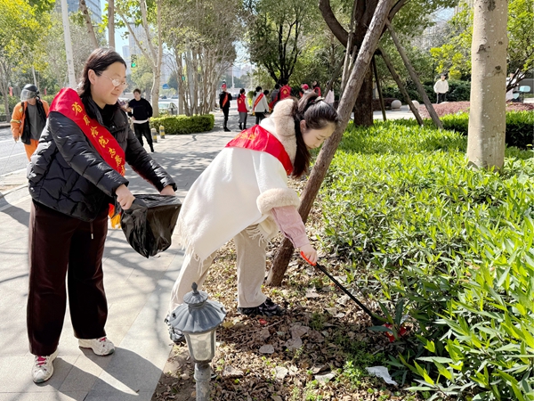 在福建质检院周边的绿化带、人行道和小广场,“爱国卫生组”的志愿者们同样干得热火朝天。他们手持垃圾夹、垃圾袋,仔细搜寻并捡拾路面、绿化带中的纸屑、烟头、塑料瓶等废弃物,用实际行动美化公共环境,传递爱护家园、文明健康的理念。