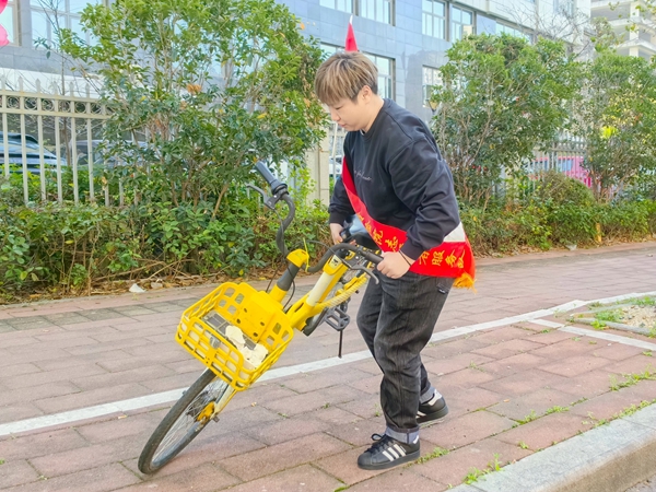 在福建质检院周边的主要交通路口,“文明交通组”的志愿者们忙碌而有序。一组志愿者化身“秩序规范员”,将人行道、地铁口、公交站旁乱停乱放的共享单车逐一归位,摆放得整整齐齐;另一组志愿者则担任“文明劝导员”,在人流车流密集的十字路口,耐心引导行人和非机动车遵守交通规则,礼貌劝阻闯红灯、逆行等不文明行为,助力营造安全、畅通、文明的道路交通环境。